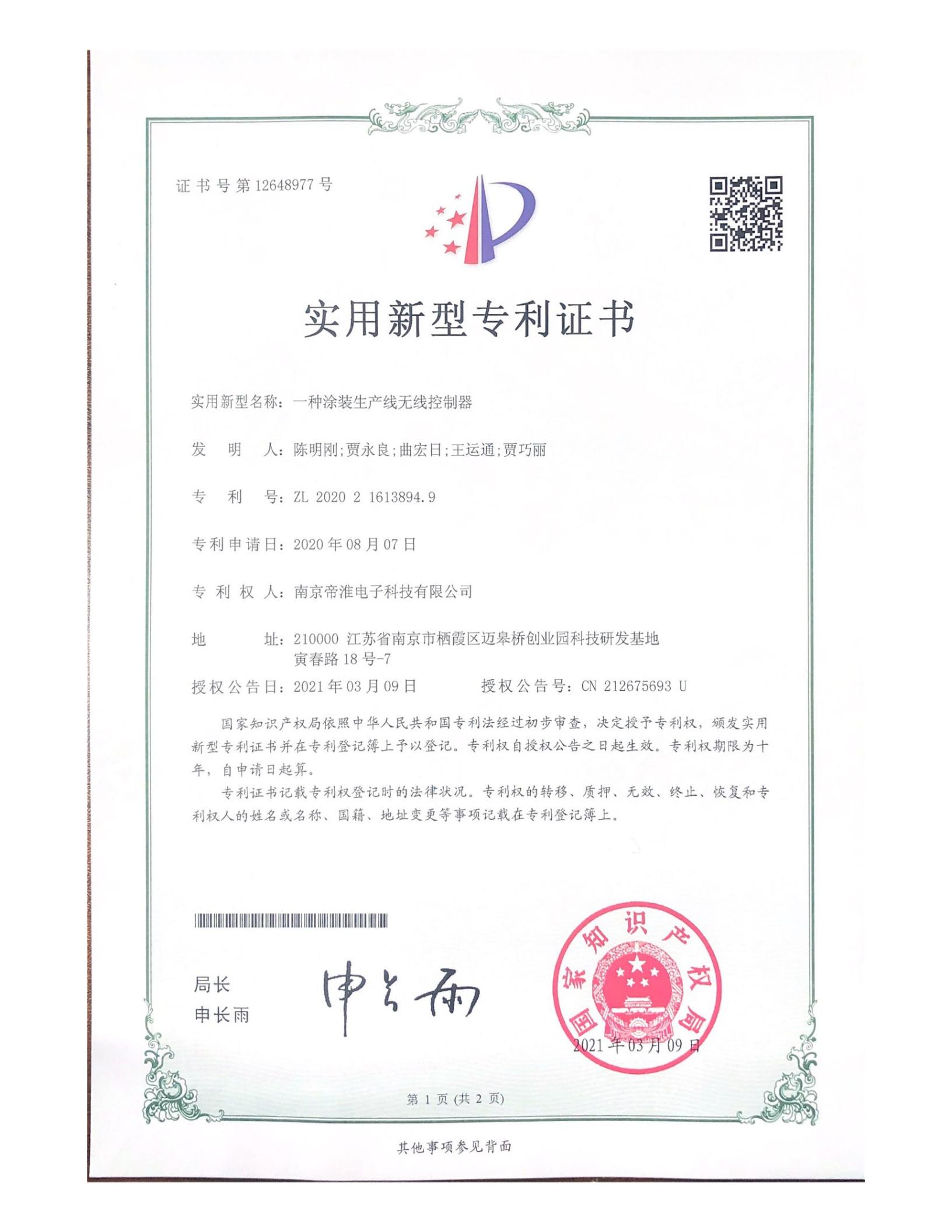 南京帝淮电子科技有限公司,国内工业遥控器行业领军企业,自主研发、定制、非标设计各类工业级无线遥控器、工业级有线控制器、智能化自主算法逻辑的本地控制器等系列产品。已经申请及正在申请的技术专利、外观专利有近三十项左右,并通过了CE欧盟认证、国家级试验检验报告、EMC电磁兼容认证等。
